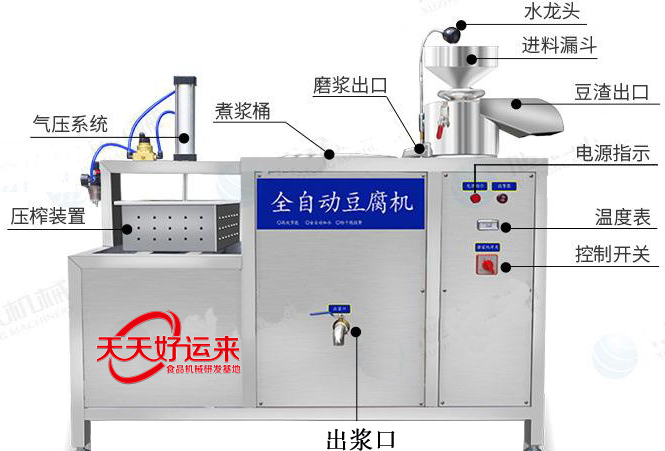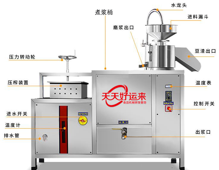 • 豆腐機(jī)由磨漿機(jī)、煮漿機(jī)、壓制成型機(jī)等三部分組成,根據(jù)工藝及輔助工作可加:豆?jié){、豆花、豆腦、老豆腐、嫩豆腐、鹵水豆腐、石膏豆腐、酸漿豆腐、彩色豆腐,果蔬豆腐及各多種混合豆腐及豆干、豆皮、小豆腐、包漿豆腐、豆泡、素雞等豆制品;中小型豆腐機(jī):分為單磨單桶雙壓榨、單磨單桶單壓榨和雙磨雙桶雙壓榨款式、雙磨雙桶四壓榨款式等;每款又分為:電款與電和燃?xì)鈨捎每畹?,可滿(mǎn)足不用場(chǎng)的用戶(hù)需要;...