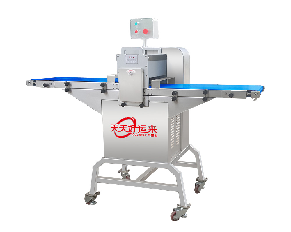 采用輸送帶進料、出料,切片厚度可按照用戶要求制作,可快速更換不同的刀組,滿足用戶各種規(guī)格的切片要求。能快速拆裝進、出料輸送帶及圓刀片組,整機采用防水設計,全不銹鋼制作,可直接用水沖洗機器。產(chǎn)品切割整齊,誤差非常小,方便操作,能實現(xiàn)產(chǎn)品快速包裝。標配尺寸25毫米;其它尺寸可定做。雞鴨禽類可帶骨切割為塊狀.